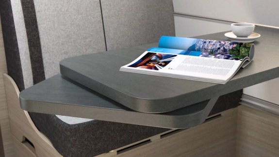 Dank des schwebenden Dinettetisches haben Sie beim Sitzen viel Beinfreiheit.