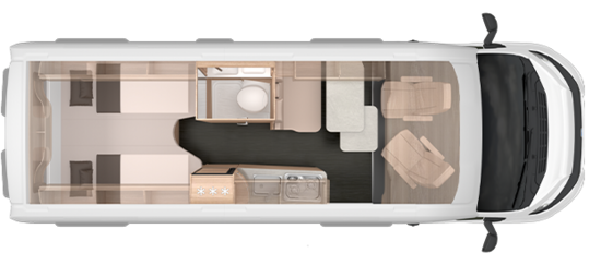 Der BOXSTAR 60 YEARS ist Ihr idealer Urlaubsbegleiter, dank der geräumigen Deckenschränke und drehbaren Fahrerhaussitze.