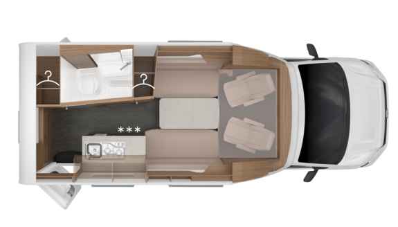 Der 500 LT bietet Ihnen ein neues Raumgefühl. Dank der innovativen Grundrissgestaltung haben Sie neben der großzügigen Sitzgruppe auch viel Stauraum auf kompakter Abmessung.