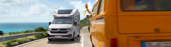 Flower-Power-Feeling, jetzt noch komfortabler: Der TOURER VAN vereint kompakte Abmessungen (Länge unter 6 m) mit maximalem Fahrspaß und bietet so ein Freiheitsgefühl, das spürbar ist. Einzigartige Grundrisslösungen, ausgezeichneter Komfort und die Vorzüge des VW T6.1 machen ihn zum idealen Reisebegleiter für bis zu 4 Personen.
